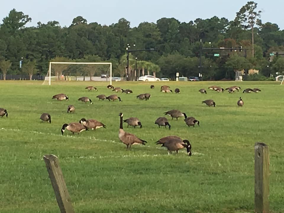 Geese Poop at least 28 times a day.